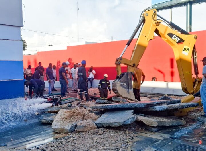 ES TIEMPO RD- Brigadas de la CAASD trabajan en reparación de avería en Avenida Máximo Gómez con...